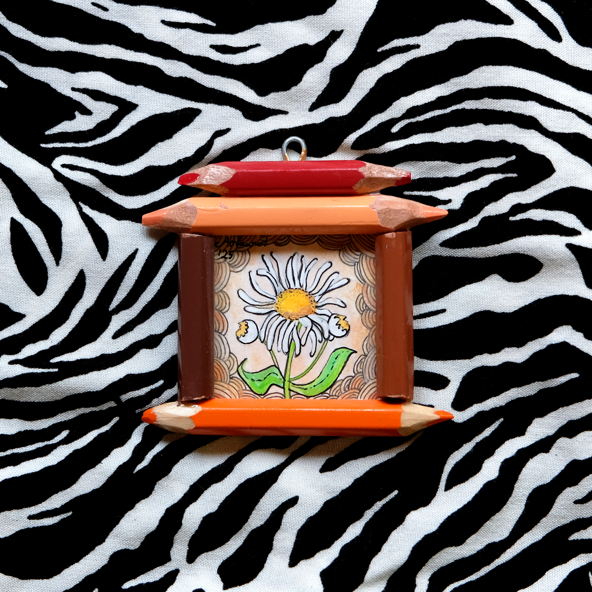Bring a spark of magic and warmth into your space with this original miniature painting - lovingly hand-drawn in ink, painted with bright acrylics (sparkling with shimmering touches of gold paint), and sealed with protective varnish. Each piece is completely unique and made to feel like a tiny window into a secret, enchanted world. The painting is framed in real colored pencils, which makes it playful and original.